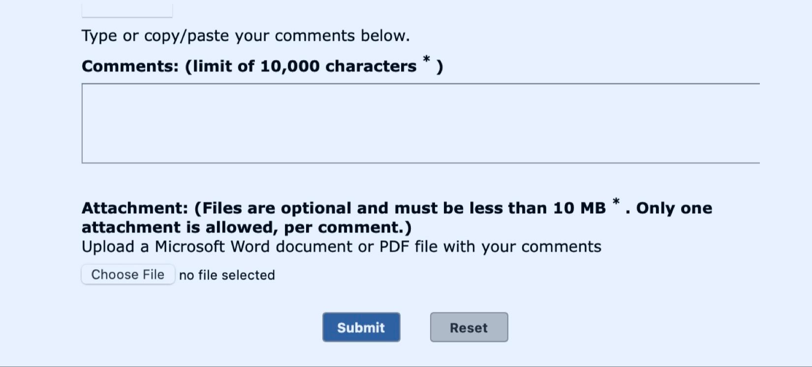 Now you’re ready to enter your comments. You can either type your comments in the box (see below), copy your text from another document and paste it into the box, and/or attach your comments as either an MS Word doc or a PDF. Finally, click Submit. You’ll receive an automated email from TCEQ confirming that your comments have been received.