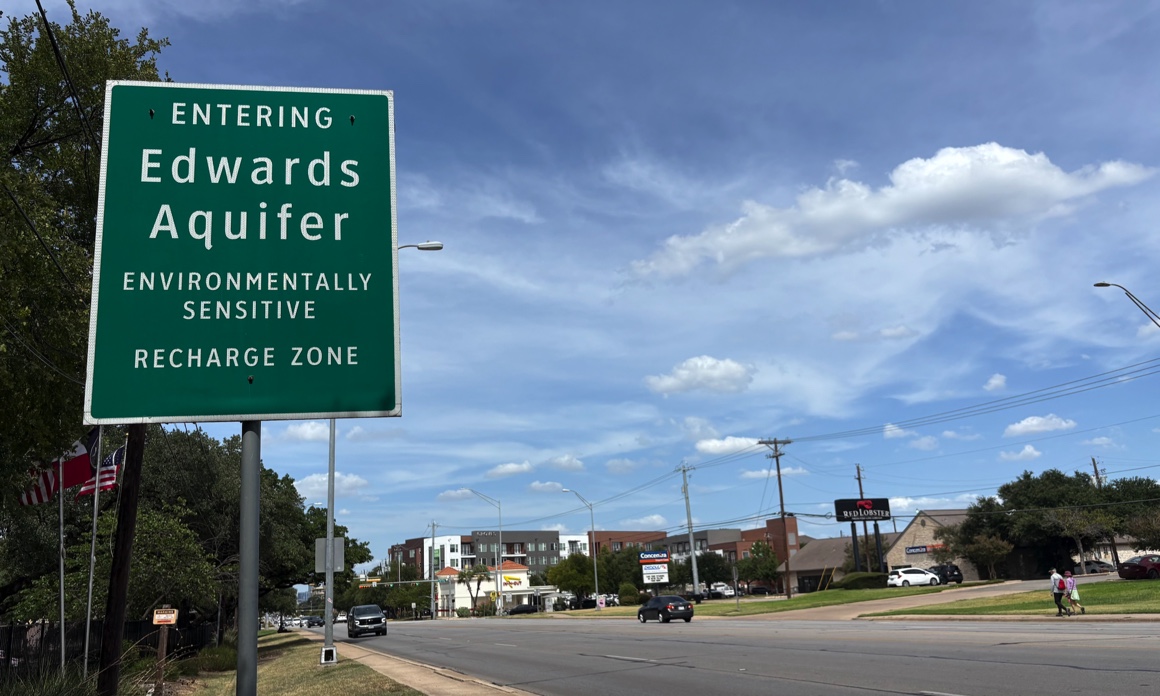 Aquifers are essentially underground water storage units that are refilled, or recharged, when surface water percolates through layers of porous rock. Any surface area through which water infiltrates and replenishes an aquifer is commonly referred to as a recharge zone. Travis and Hays country residents are likely familiar with road signs that read, “Entering Edwards Aquifer environmentally sensitive Recharge Zone.” These signs were installed with the intention of raising awareness for the aquifer’s water quality and preventing the contamination of groundwater from surface activities. Conversely, an aquifer contributing zone is any area where surface water (streams and rivers) will eventually flow into a recharge zone and contribute to an aquifer. Due to Central Texas’s varied geology, the depth of the aquifers beneath our feet ranges from just a few meters below the surface to several hundred meters deep. Aquifer depth refers to the distance between the ground surface and the base of the aquifer, while saturated thickness is the vertical distance from the top of the aquifer’s water table to the base of the aquifer.
