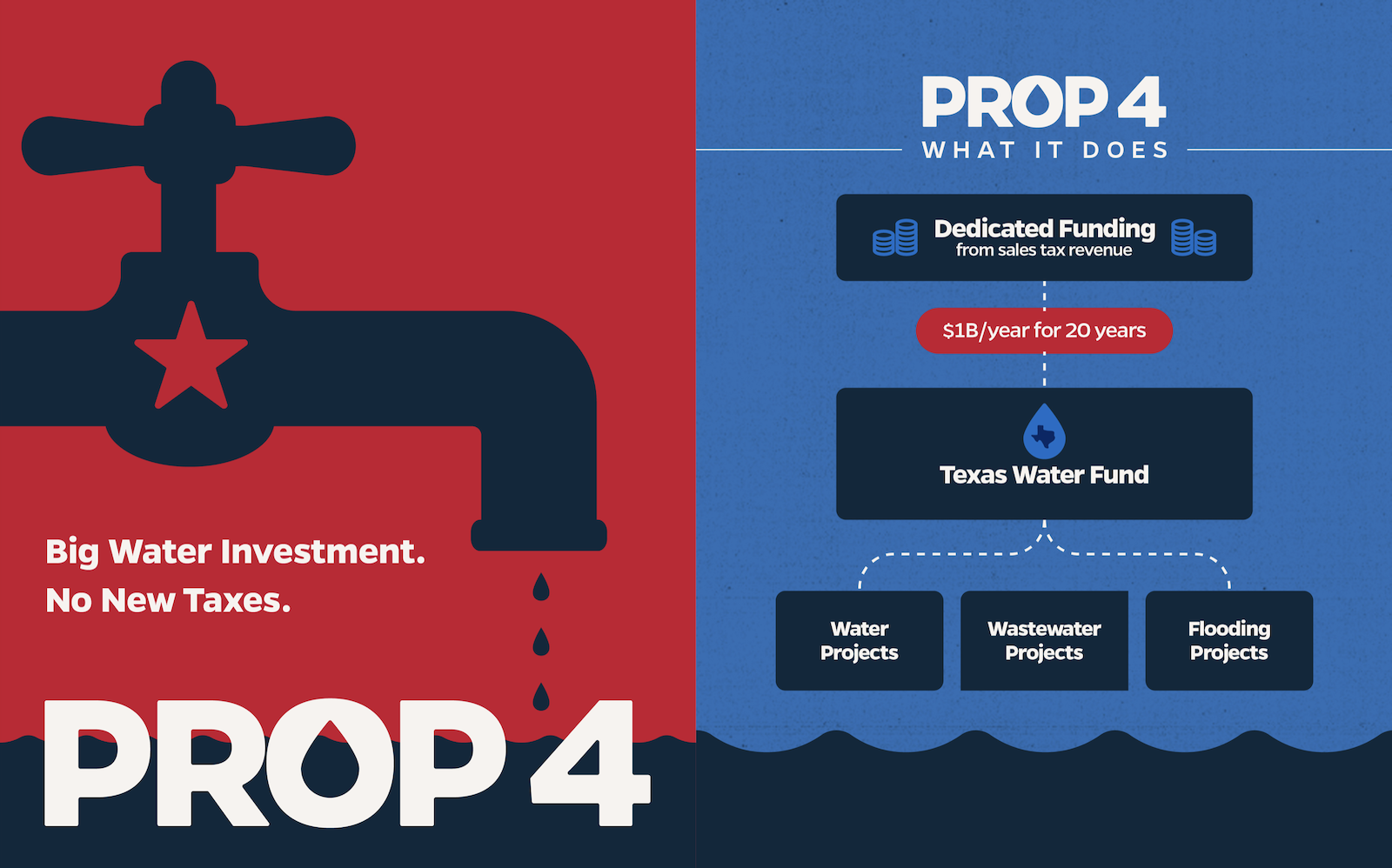 The key feature of Prop 4 is that it would amend our state’s Constitution to spend $20 billion on water infrastructure projects. This money will not come from a new tax — it will be an allocation of $1 billion annually for the next two decades from existing sales and use tax revenue that the state already collects. This money will go into the Texas Water Fund, which our state’s voters created by approving a previous constitutional amendment two years ago. Funding for specific projects will be determined by the Legislature and will be administered by the Texas Water Development Board, one of our oldest and best-run state agencies.